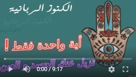 السلام عليكم و رحمة الله عائلتنا الكبيرة في قناة اسرار علم الباطن .. سبق و تكلمت في حلقات سابقة عن الحسد و العين و طرق ازالتهم .. اليوم شيء مختلف اية قرانية واحدة تزيل عنك الحسد و العين و الطاقة السلبية نهائيا و تبعد عنك شر الحساد و تعمي اعينهم عنك و تشغلهم بأنفسهم عليك