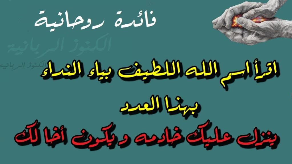 اقرأ اسم الله اللطيف بياء النداء بهذا العدد يتنزل عليك خادمه و يكون اخا لك