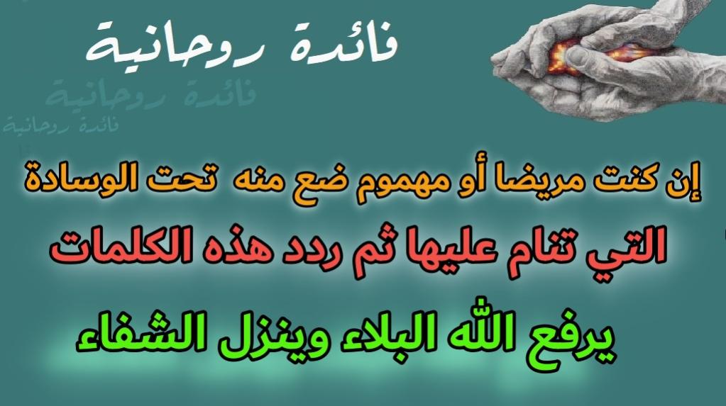 رد: إن كنت مريضا أومبتلى أومهموم ضع منه تحت الوسادة التي تنام عليها ثم ردد هذه الكلمات يرفع الله ال
