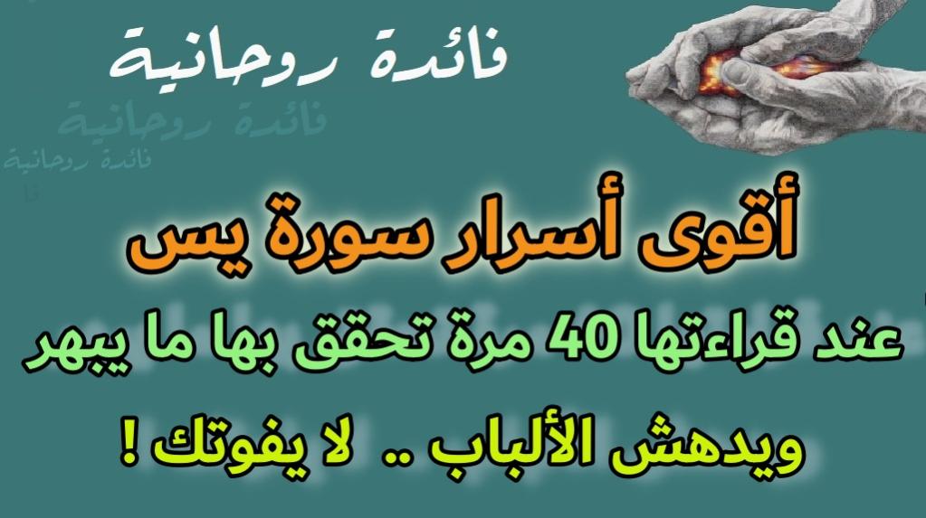 السلام عليكم و رحمة الله و بركاته من اقوى اسرار سورة يس اعطيكم اليوم باب تسخيري مجرب صحيح بدون شك ان استعصى عليك أي امر كان سواء كان زواج او جلب بعيد او محبة قريب او علاج مريض او تسخير رباني تنزيل روحاني او أي شيء فكرت فيه و وجدت انه صعب التحقيق توكل على الله تعالى و انتظر الى جوف الليل ابتداء من الساعة 12 ليلا تقريبا بعد ان تتوظأ و تحسن الوضوء .. صل ركعتين للحاجة و رش المكان الذي ستقرأ فيه وظيفتك بماء الزهر و تكون لوحدك في هذا البيت او المنزل و من الاجود ان تقرأ السورة المباركة على ضوء شمعة و القراءة تكون سورة يس كاملة عدد أربعين مرة جلسة واحدة و على رأس كل عشر ترفع كفيك الى السماء و تقول السلام عليكم و رحمة الله يا ملائكة السامعين لقرءاتي سألتكم بالله العظيم و نور وجهه الكريم و قوله الحكيم إذ تستغيثون ربكم فاستجاب لكم أني ممدكم بألف من الملائكة مردفين اللهم لك رفعت يدي بكذا و كذا فلا تردني خائبا و لا ترد يدي فارغة يا ذا الجود و العطاء و صلى الله على سيدنا محمد و اله و صحبه و سلم ..