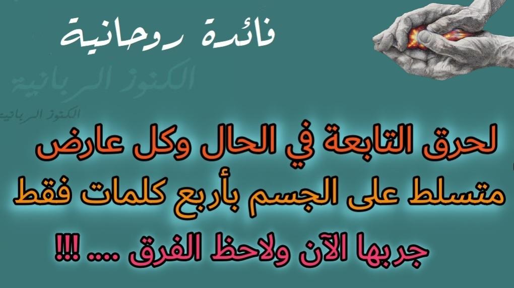 السلام عليكم و رحمة الله فائدة اليوم لحرق التابعة و كل عارض متسلط على الجسم فقط بأربع كلمات .. خد على بركة الله حجر من الشب الأبيض و اكتب عليه بأي قلم كان حتى لو كان قلم حبر اسود الكلمات الأربعة التالية و هي .. تبارا – ضلالا – احترقت – افئدة .